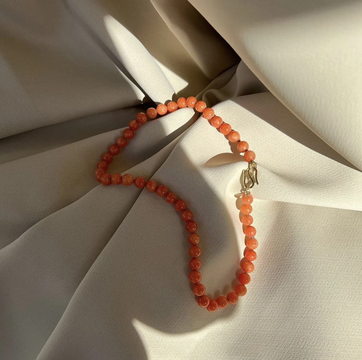 Necklace with corals and big s-lock in 14 karat solid gold