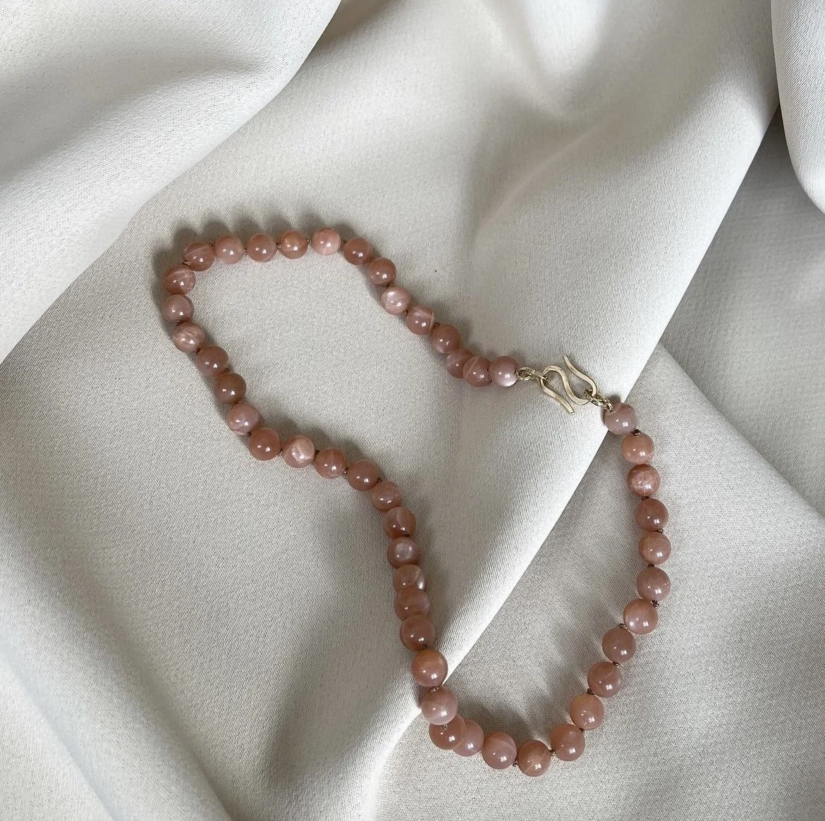 Moonstone necklace with big s-lock in 14 karat solid gold.