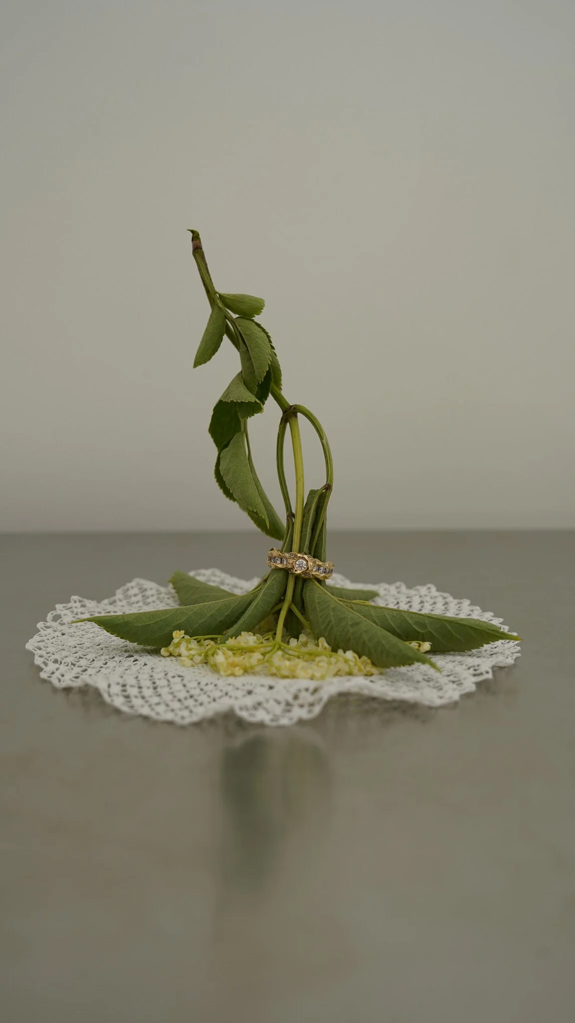 14 carat gold ring set with30×0,005ct and 31×0,01ct Top Wesselton VVS diamonds.