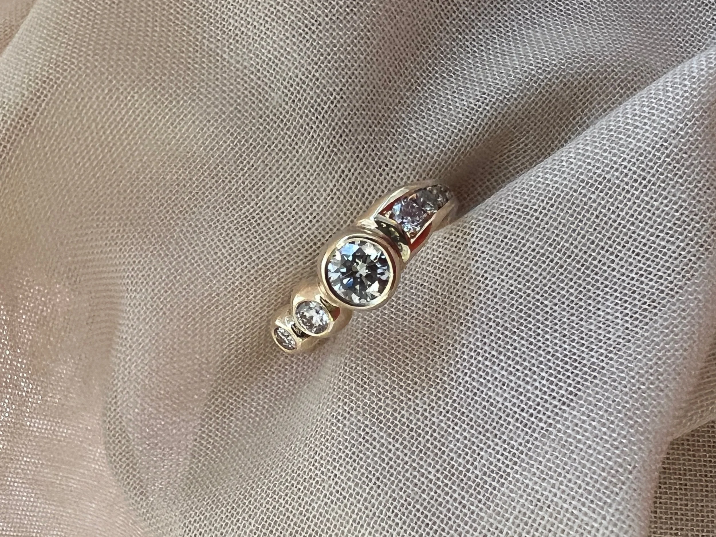 14 karat solid gold ring with 5 x 0,03ct champagne diamonds