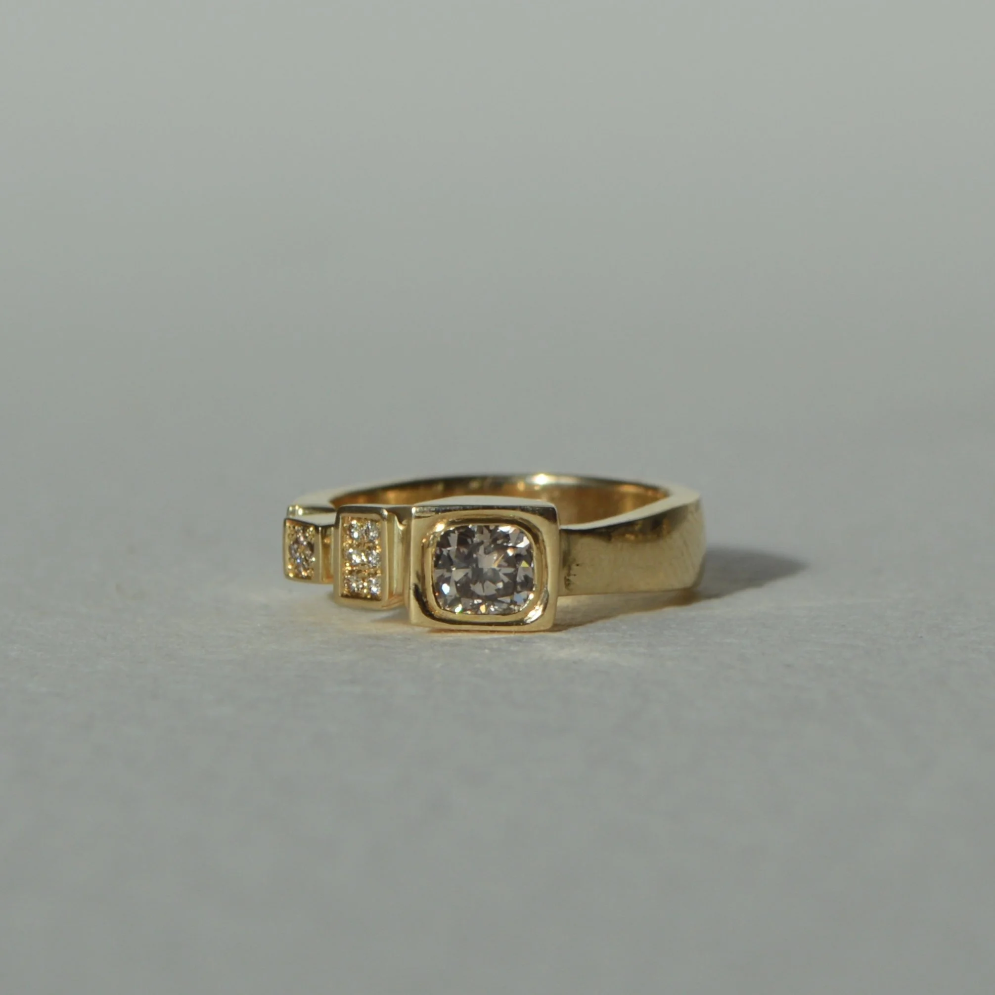 14 karat soid gol ring with a 0,18ct champagne diamond