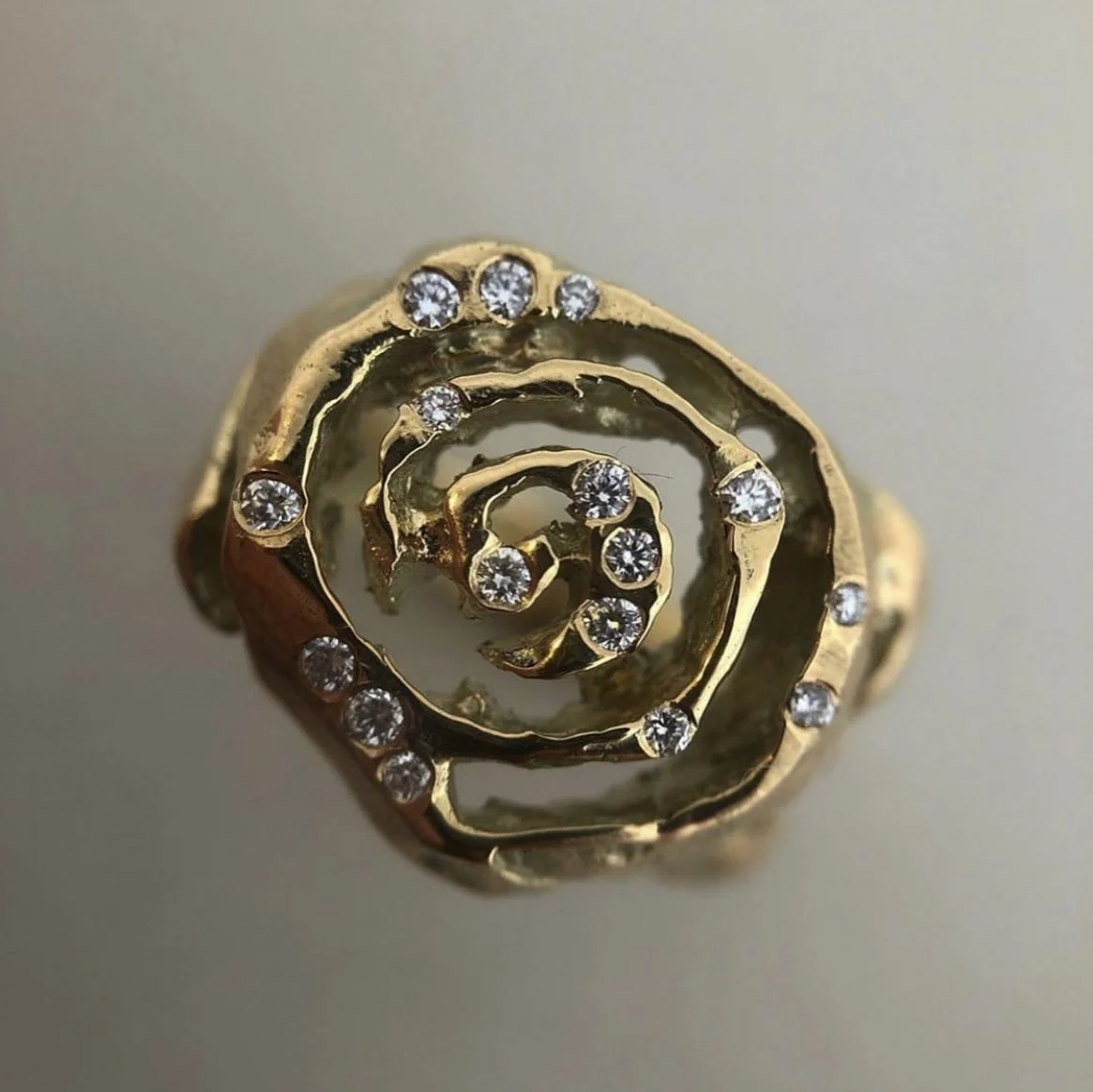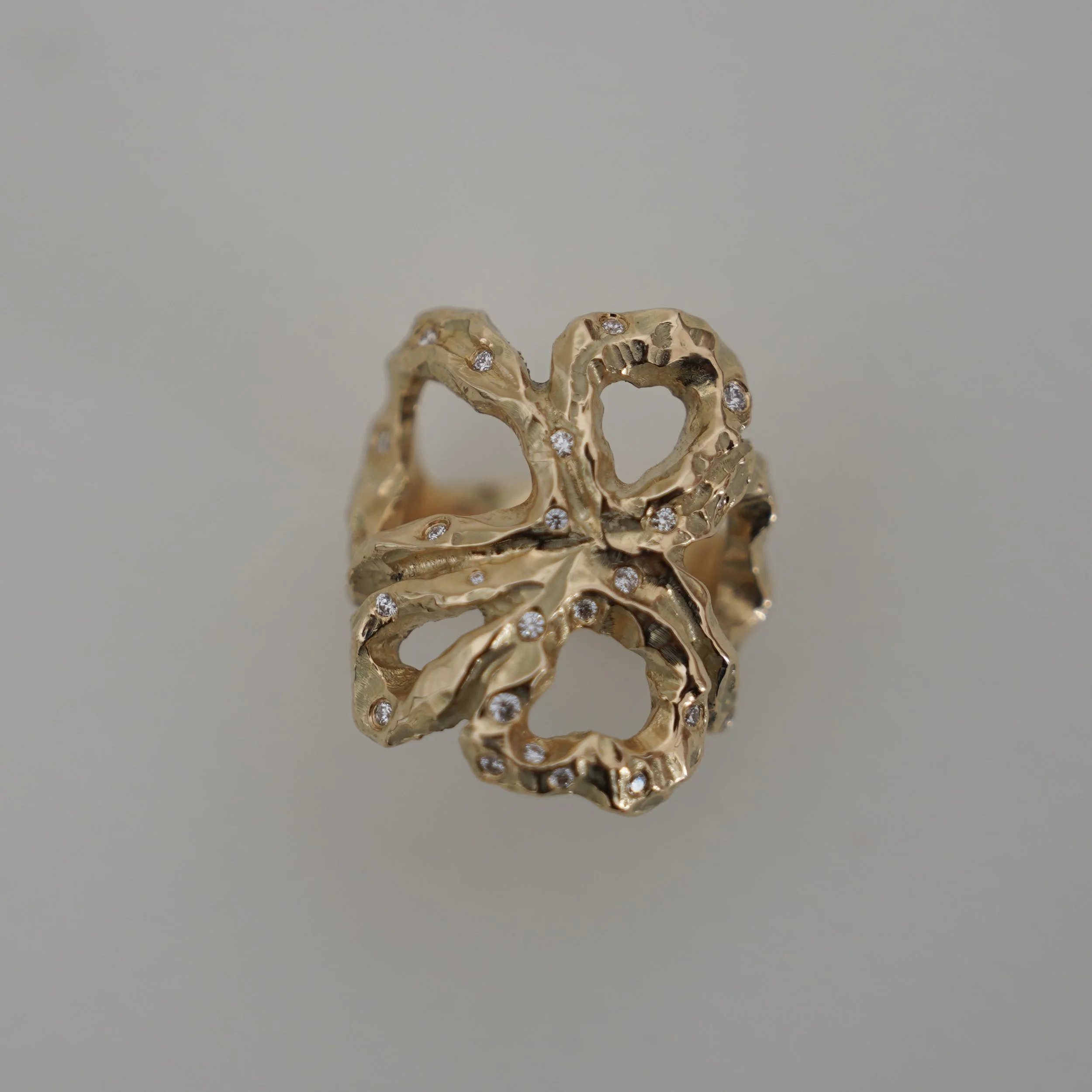 14 carat gold ring with 22 diamonds.